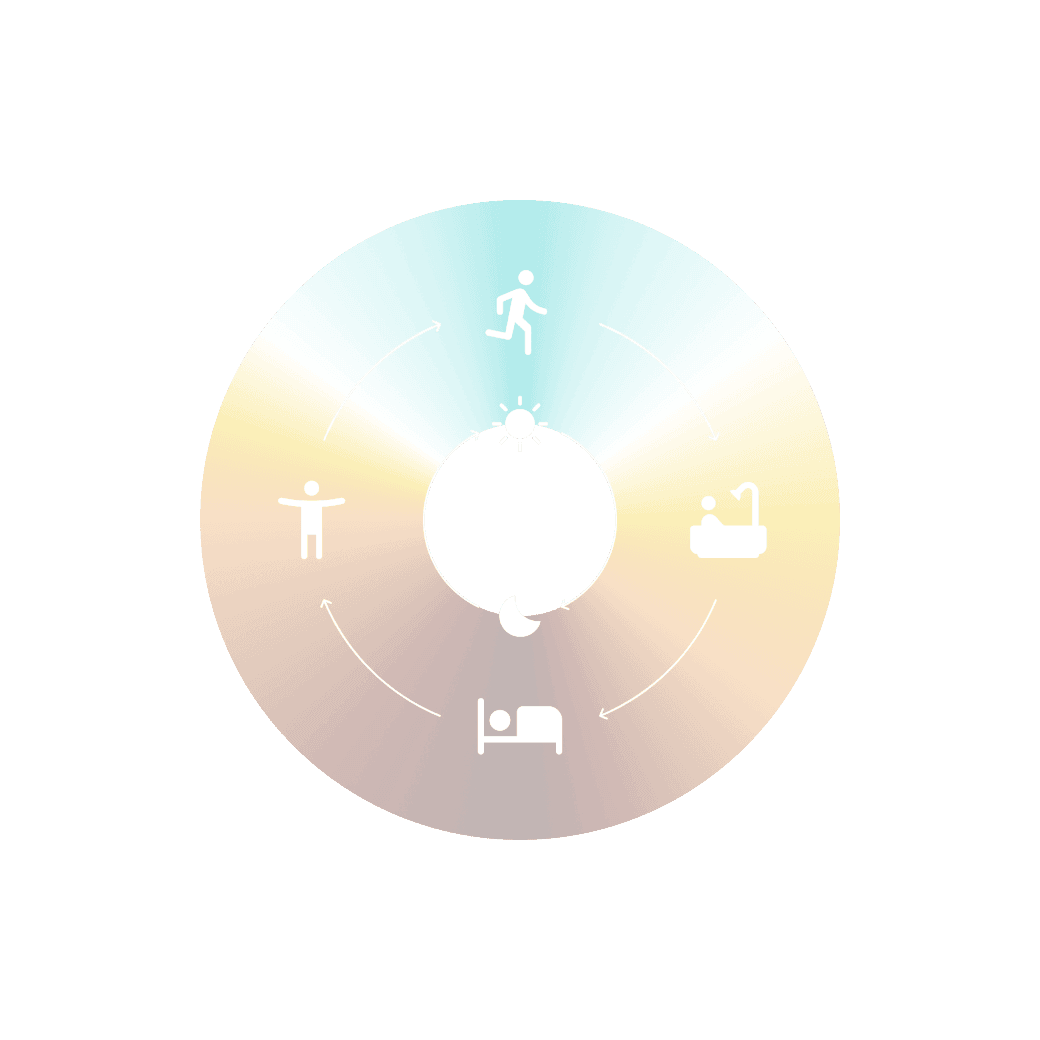 自然の光の移ろいに合わせて照明を5つの時間帯で自動調整。 朝は目覚めを促し、昼は集中を、夜は穏やかな灯りで心と体を整え、睡眠の向上をサポートします。 体内リズムを整えることで、健やかで質の高い暮らしをもたらします。